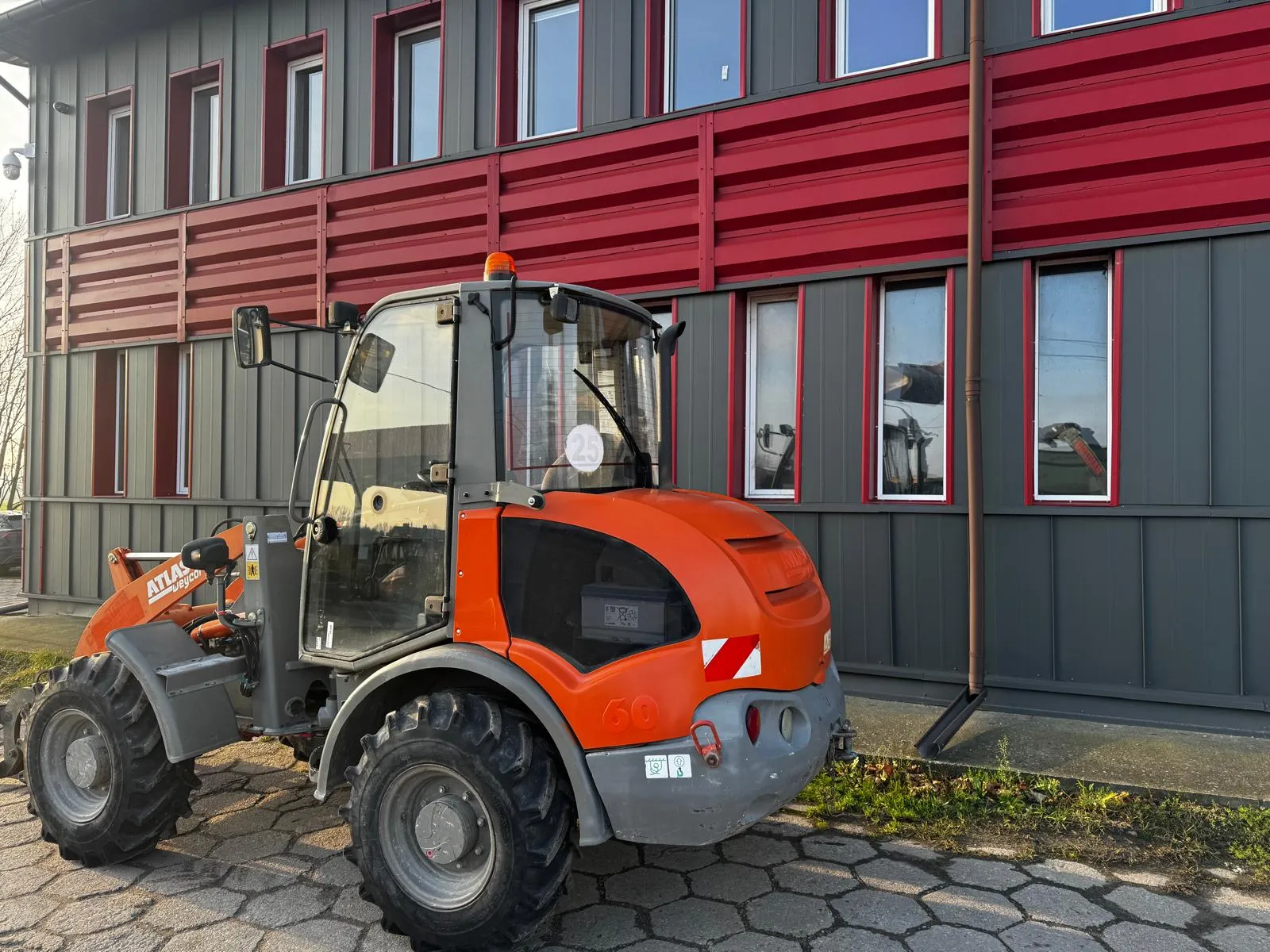 Ładowarka przegubowa kołowa marki Atlas model AR60. Rocznik 2015 z przebiegiem 1560 motogodzin. Maszyna o kompaktowej budowie, przeznaczona do prac budowlanych, drogowych oraz komunalnych. Stan techniczny adekwatny do niskiego przebiegu – brak luzów na sworzniach, hydraulika i silnik pracują prawidłowo.
